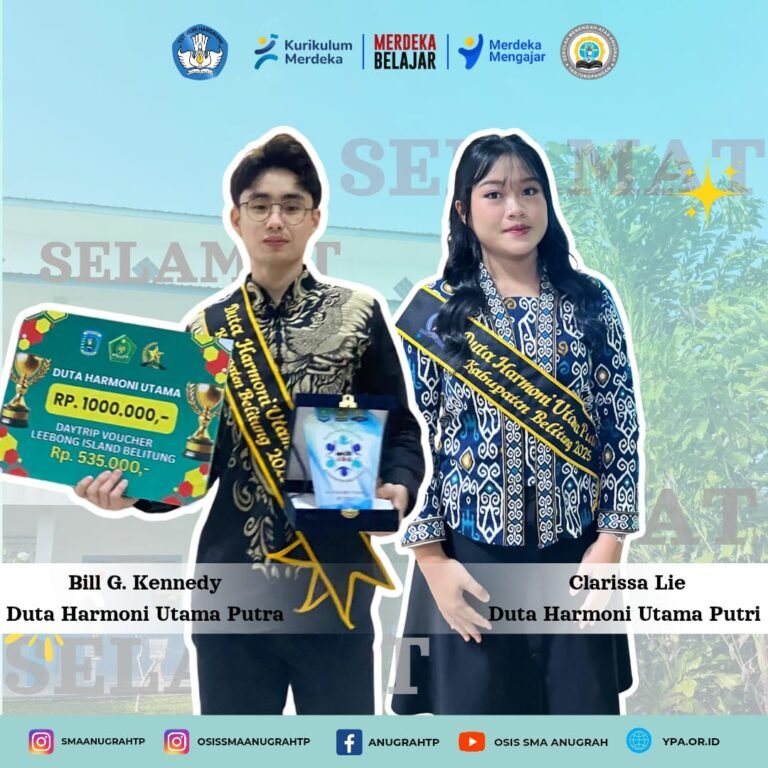 Kami sangat senang dan bangga melihat kalian berdua terpilih sebagai Duta Harmoni Utama Kabupaten Belitung. Ini adalah prestasi yang luar biasa dan patut diapresiasi. Kami yakin bahwa kalian berdua akan menjadi contoh yang baik bagi masyarakat dan akan terus mempromosikan nilai-nilai harmoni dan keselarasan di Kabupaten Belitung. Semoga terpilihnya kalian sebagai Duta Harmoni Utama dapat menjadi motivasi bagi generasi muda lainnya untuk terus berpartisipasi dalam kegiatan sosial dan mempromosikan nilai-nilai positif di masyarakat, Sebut Bapak Ferlianus Waruwu, S.Pd., Gr. Selaku guru pembimbing dan waka kesiswaan dari SMA Anugrah Tanjungpandan